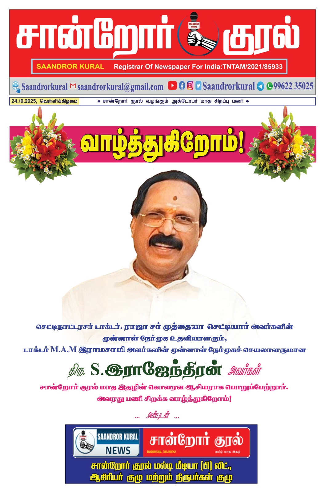 Dr. G.B. Pachaiyappan is the founder, publisher, and editor of the magazine. It was established in 2021, and the first issue was released in March 2021. The magazine is known for its ethical journalism. The purpose of “SAANDROR KURAL” is to inform, educate, and entertain—the core mission of our publication, which employs trained, expert journalists. While non-journalists may contribute articles with various intentions, the judgment of a gatekeeper (a skilled editor) refines their work, ensuring quality and credibility.
